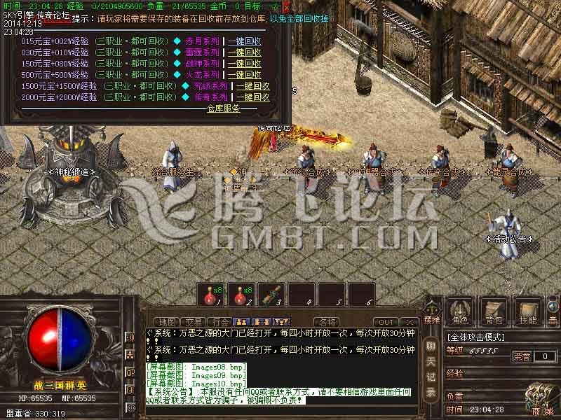 游戏介绍① >> 2014年技术对传奇重金聘请资深游戏策划主创及专业美工人员,历时半年多创新修改,呕心沥血制作,终于与大家见面。