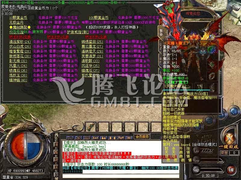土豪玩家,直接领取所有的充值回馈,带上高级转生宝宝,去天魔·圣地高转地图打高转装备,一片一片的烧。