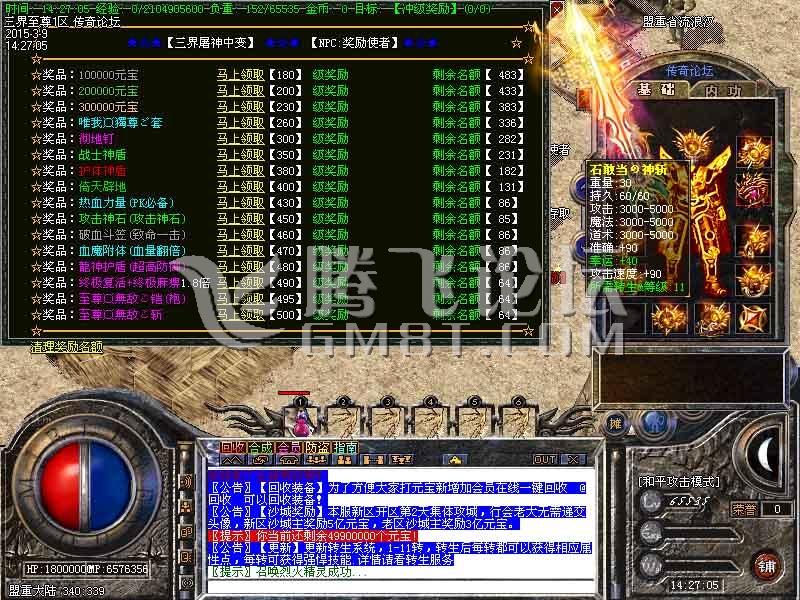 2015年3月新版.提前开放本服适合散人长期玩家升级快.装备好打