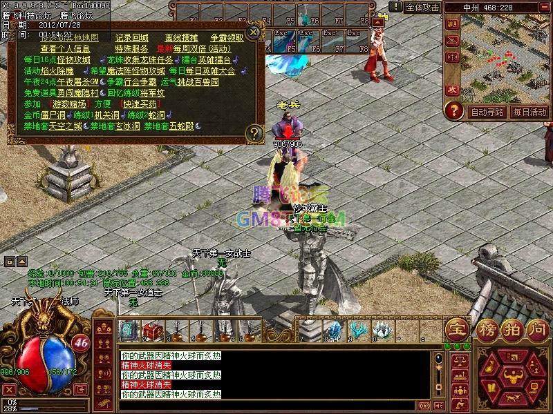活动篇:行会争霸活动每日准时开启,获胜行会可进神秘地图打宝一小时,绝对的高经验高爆率.你的行会是霸主吗?那就来证明吧!为保证游戏的公平长久,所有活动只保留每周末双倍经验,和怪物攻城.活动少了不代表激情少了,恰恰相反,由于精简了很多无用的地图和活动,人员相对集中,而且每个地图都是有不可替代的作用,那会是什么样的场面呢?