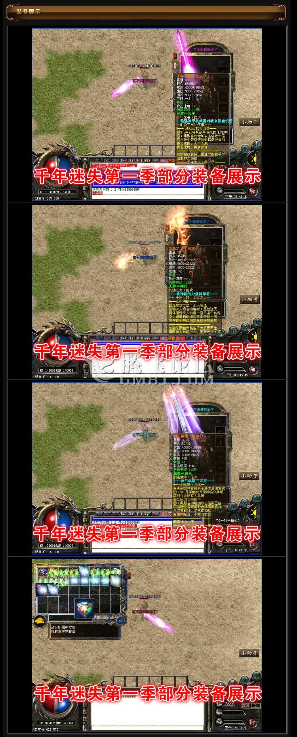 【装备介绍】本服设置了几个野外BOSS,爆率超越你的想象,每60分钟定点刷新,具体位置请在游戏中查询,设置了魂山1-10层,每一层BOSS爆率非常之好,并且需要注意的是,命格[★] 【此物品放入背包,自动叠加攻击倍数,和自身的转身倍数攻击,武器倍数攻击可以实现倍数攻击叠加!】迷失界独创【命格+武器+转生】倍数叠加,注意此神物只有在魂山1-10层,以及野外BOSS,地图BOSS身上爆出,爆率适中!并且在魂山10层每60分钟刷新5大千年超级BOSS