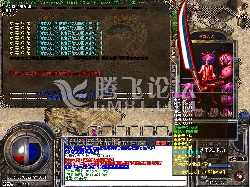游戏介绍⑩ >> 资深玩家可以投入500-1000.直接满转.领取超级武器衣服,去换超级特效护符(秒杀所有怪物).真正的十步一杀.