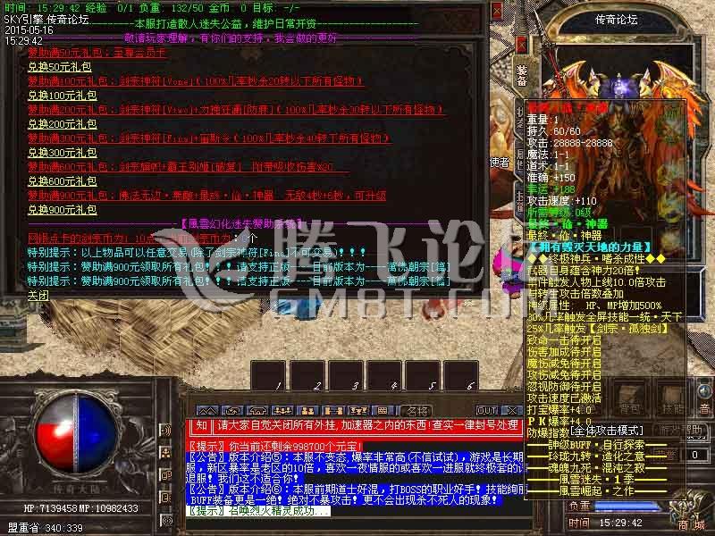 【关于RMB玩家】:RMB玩家赞助赠送 剑宗神符[Vone] 可秒杀20转以下BOSS,神符档次不同最高秒杀40转下全部怪物