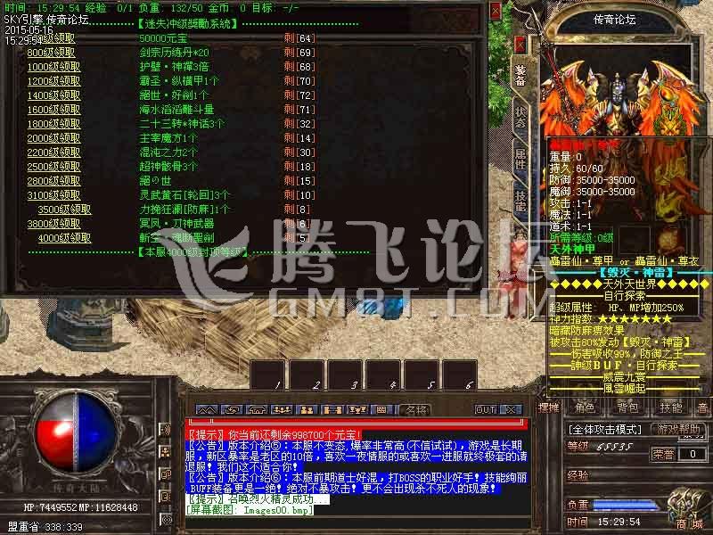 【关于等级】:本F最高等级暂定于4000级 冲击奖励丰厚 本F承诺 只要你花时间 一切装备都可以爆到合成 元宝非常好打 值得体验 建议:上线先考察所有NPC,三大散人地图都有高级和超级BOSS。只要有时间就有一切个新手练级地