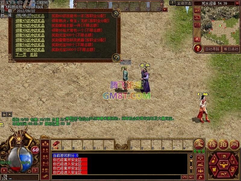【新区首届攻沙奖】:开区第4天(包括开区当天)晚上20点-22点新区首届攻沙(无需提交头像),攻沙奖励:3000元宝+王者之戒1枚,守沙3天可以获得沙城专属屠龙刀一把(合区收回)