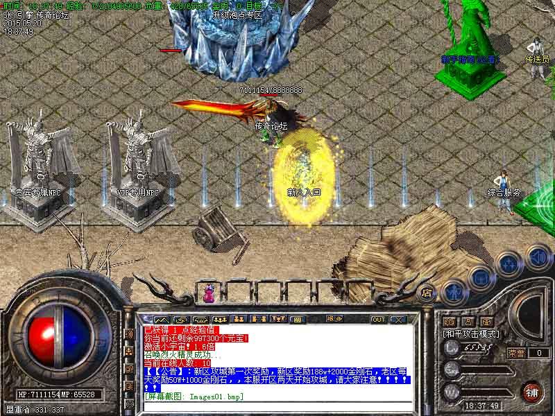 【游戏介绍】:海量广告宣传,保证人气火暴!新区第二天晚上首次攻沙奖励2880万元宝,老区奖励100万元宝。