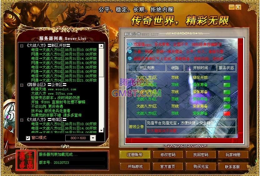 【版本介绍】:无元神轻微变态版,顶级装备武神系列,3职业平衡、长久耐玩!稳定开放.每天三服12个区 跨F大战.