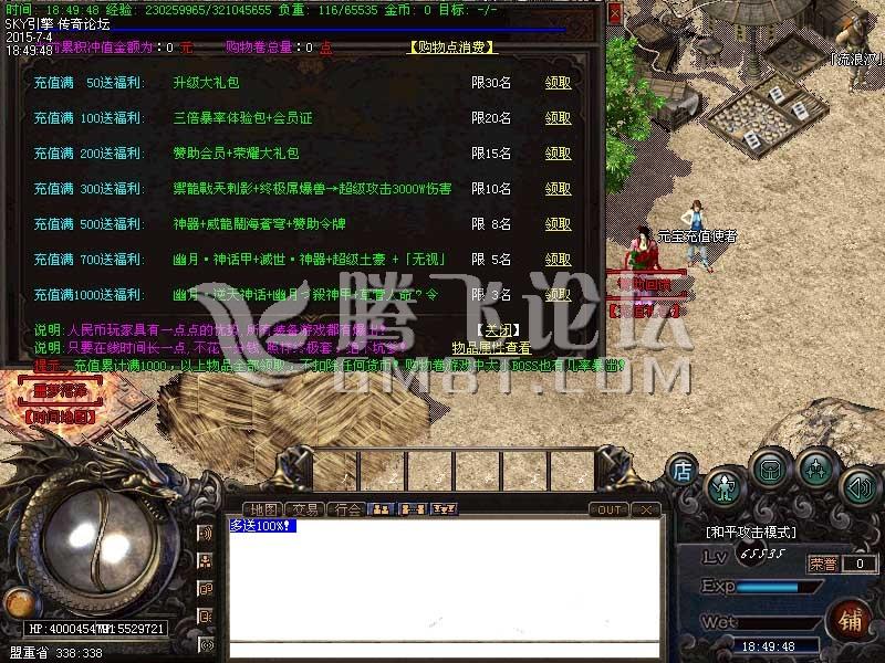 【特色④】: 新增特色地图,适合散人打宝,单人就能混终极装备!散人不花钱一样混的好。