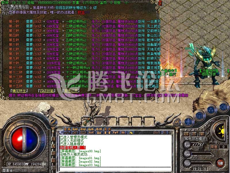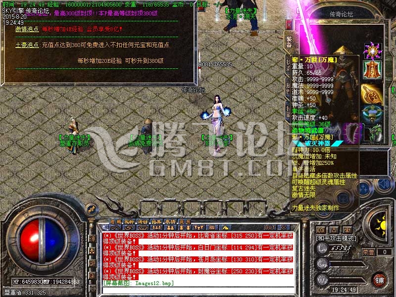 ②: 本F封顶380级。满转20转永久3.5倍攻击,不爆不攻击不爆血量!!散人好混,元宝 货币都很好打,只要你愿意花时间,本F装备你都可以拥有!!