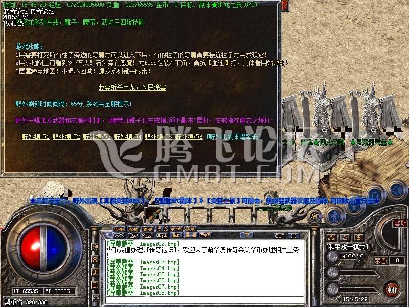 [全面改版]  升级速度,装备爆率大上调,装备全更新,新手超易发展,侧重PK。 [最近更新]  只设部落联盟2大行会,入会可采泉水换经验,并与行会幸运值互动。 [最近更新]  增加新副本天地之城,怪物50种,增加新特效BUFF装备21件。 [照顾新手]  斩龙和贪婪副本增加野外,去掉繁琐材料直接掉成品! [特色更新]  王者战场加入第一部分:战场灯笼。每晚8点到9点开放战场! [职业调整]  道士增加85级特色可装备宝宝。 [特色更新]  附魔首饰增加沙巴克专用特效,沙巴克人更具王者魅力。 [照顾新手]  增加道尊祝福NPC,给新手释放祝福,提高前期防御能力。 [副本更新]  新增【湖底石窟】副本,20多种怪,掉落专修图纸和宝石。 [游戏更新]  增加两种增强pk中防御性的石头,让pk更有持久性。 [特色更新]  增加职业专修系统,三职业60级后可选专修侧重方向。 [副本更新]  增加【南满大陆】副本,掉落下身装备和盾牌勋章附魔材料。 [特色更新]  增加射雕英雄古墓和圣衣。盟重安全区神鹰掉落机关! [游戏更新]  增加斩星PK休息间,练习手法好去处,兼打BOSS。 [副本更新]  增加【遗忘之都】副本,新增衣服及上身附魔材料。 [特色更新]  增设十大BOSS掉武器元素石,华滨从此真正走特效路线! [副本更新]  增加【斩龙之旅】副本,掉落龙系列带特效装备。 [游戏更新]  沙巴克城战后增加护魔武场地图,让PK火焰继续燃烧。 [副本更新]  增加【贪婪之旅】副本,掉落贪婪盾牌和贪婪首饰。