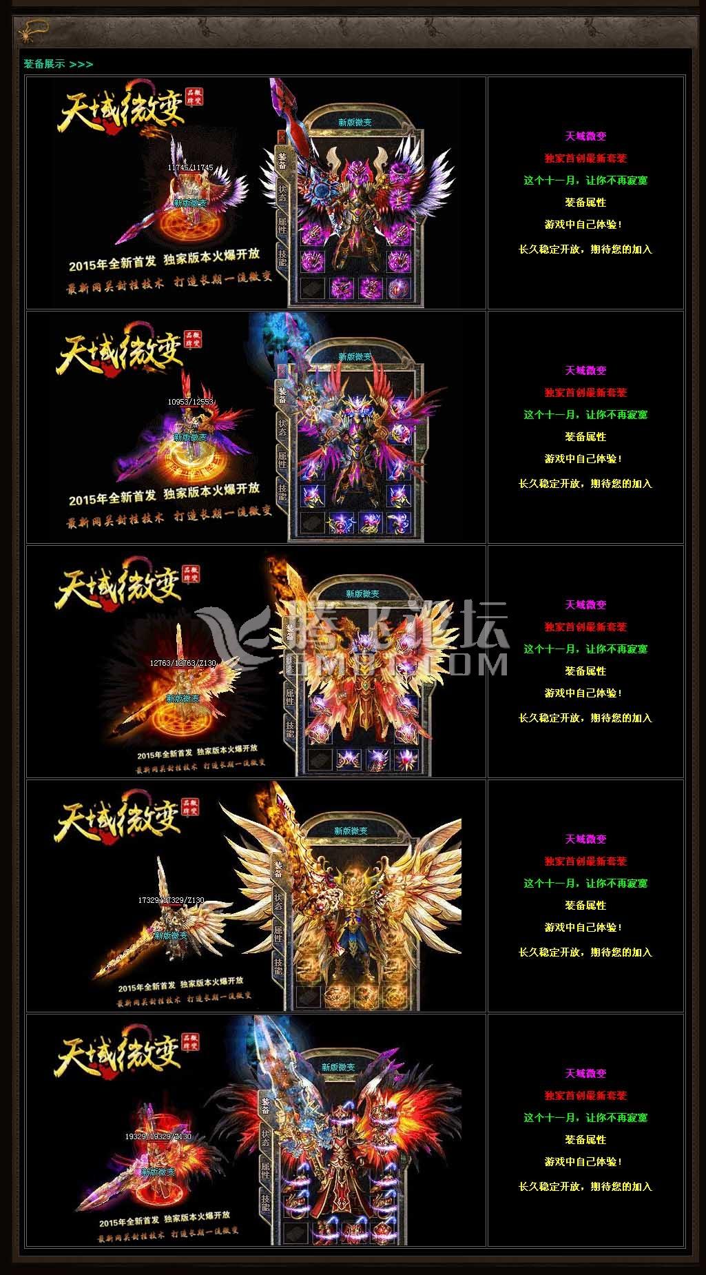 游戏介绍① >> 2015年天域微变重金聘请资深游戏策划主创及专业美工人员,历时半年多创新修改,呕心沥血制作,终于与大家见面。