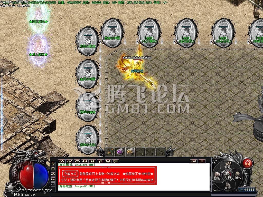 游戏介绍 >> 真正终极全暴!无合成,免费泡点到顶级,奖励丰厚,无特戒,全靠打,真正着眼PK至上的精神!
