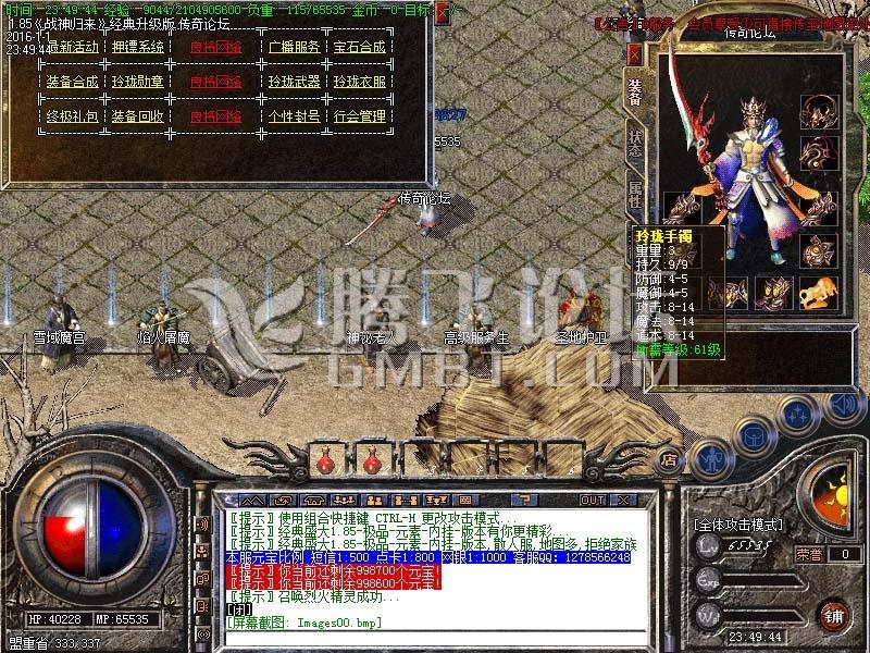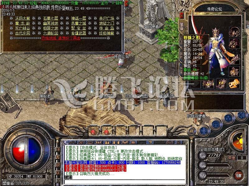 4、各种高级武器的属性都大大加强了,完全能勾起你的拥有欲!比如,攻5-45的屠龙、魔龙武器、纵横武器、等等。