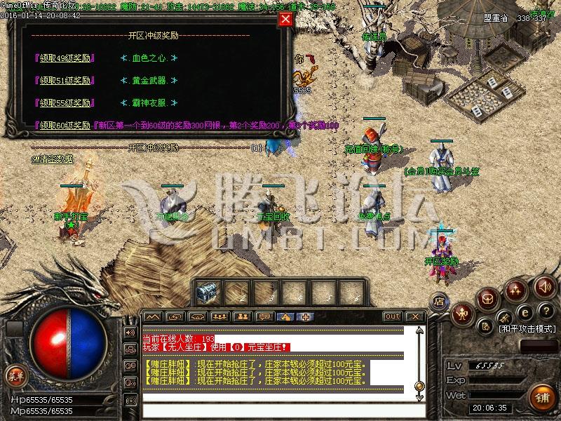 【攻沙奖励】:开区第2天攻沙,首次沙城主奖励100000元宝+进地图收入,沙成员和老大有特殊称号。