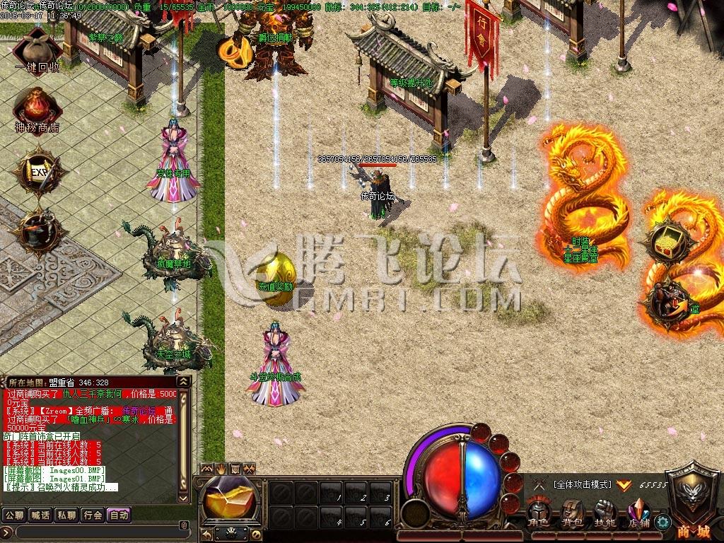 4.增加土城活动BOSS爆出物品(必爆2-10倍爆率卷,有几率爆蚩尤武器和魔王衣服,增加龙魂之心爆出数量