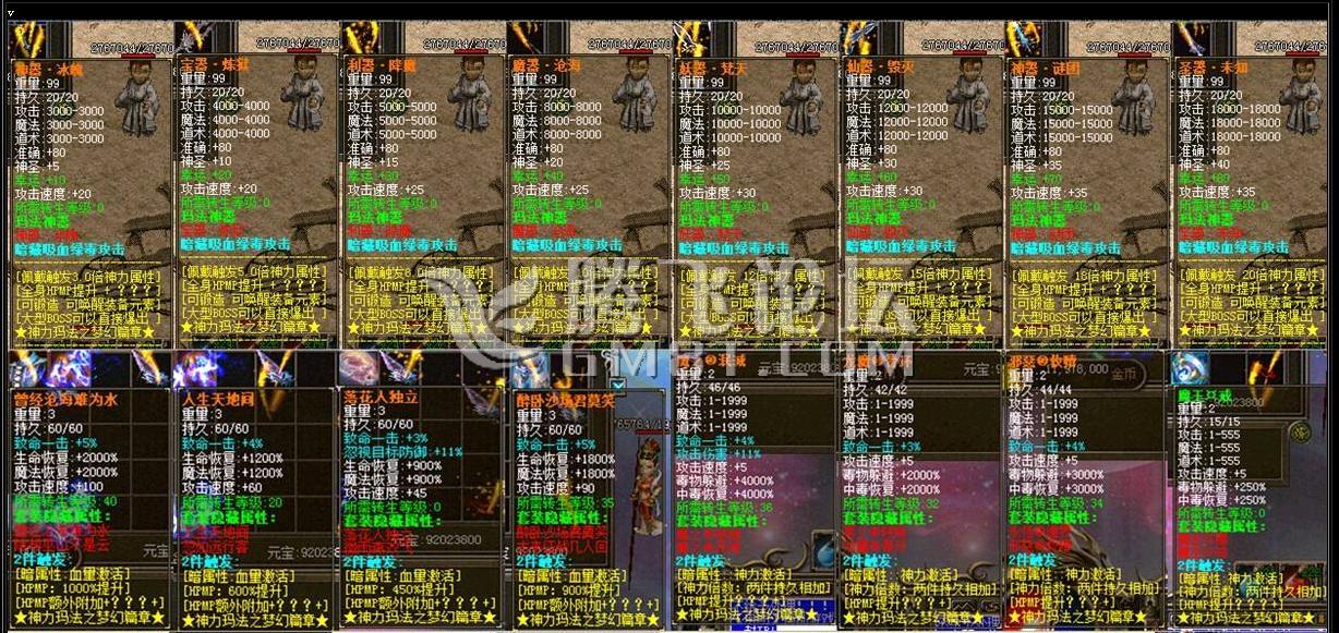 更新五:更新了所有衣服宝石和武器的属性.让其更加合理.增加了1500.1600.1700.1800等级佩戴的四套神秘装备.属性不公告!.小鬼和鬼王鬼母爆出!