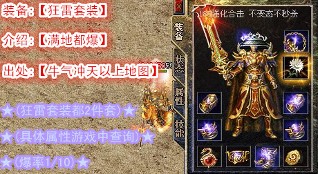 关于装备:本服装备档次顺序由低到高为:初级(战神、星王)—中级(狂雷、王者)—高级(战魂)——终极(??)