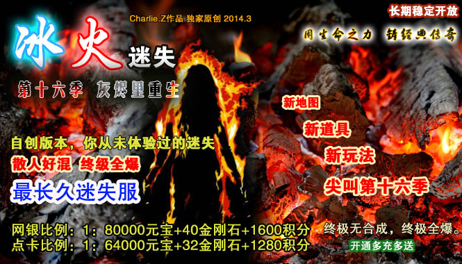 版本为冰火迷失独家所有——2014。若在游戏中有什么疑问或问题可以给GM留言 |