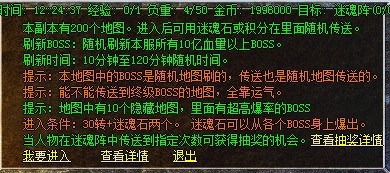 迷魂阵增加到200个地图,10个隐藏地图。并提高怪物BOSS的质量和数量。