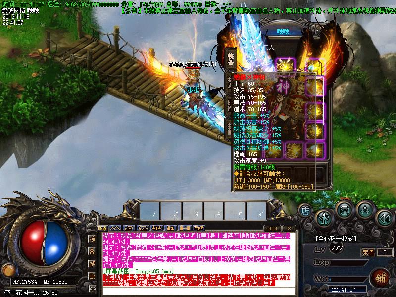 【最大特色】:所有装备小怪和BOSS爆出,同时还爆出所有材料经验等等...