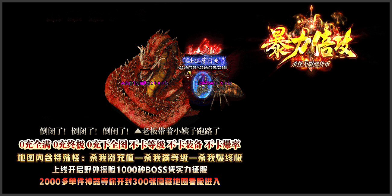 免费泡点 等级好升 BOSS超多 极品狂暴 散人就是爷
