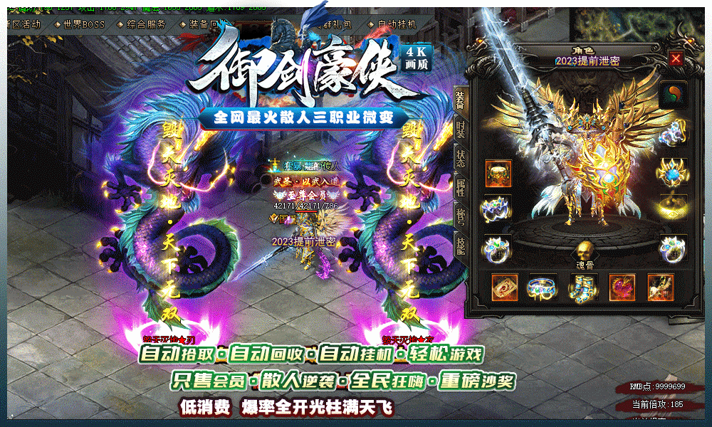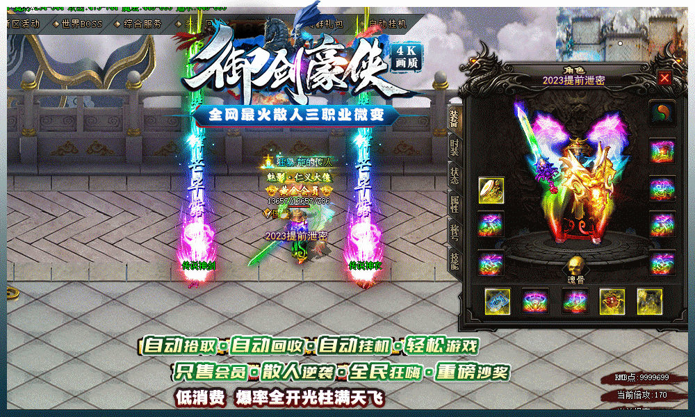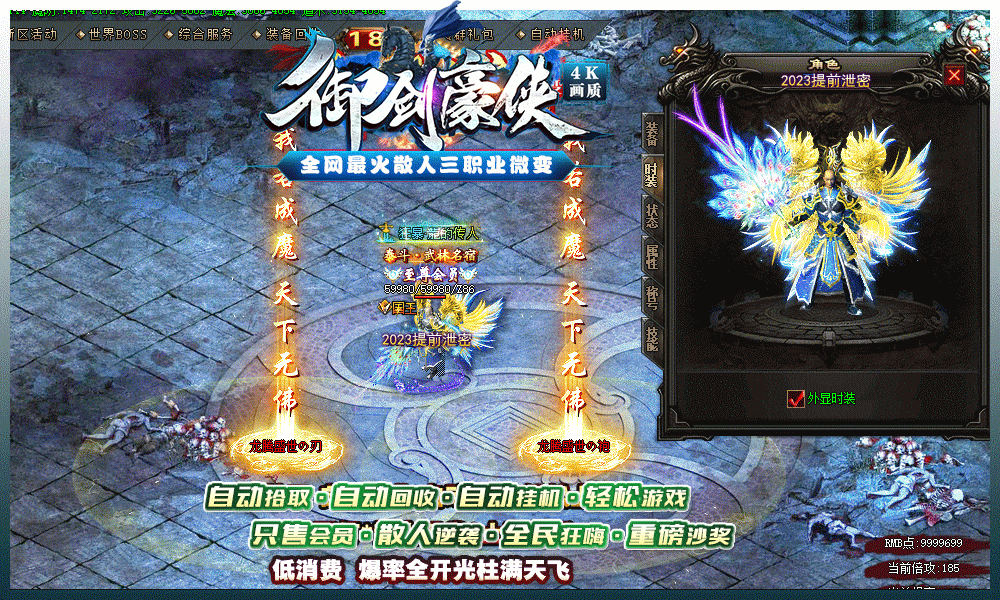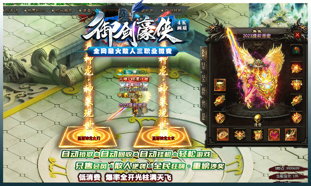 - 【游戏简介】:-本服玩法简单,画面清爽,拒绝花里胡哨,拒绝繁杂混乱,拒绝无用功能!