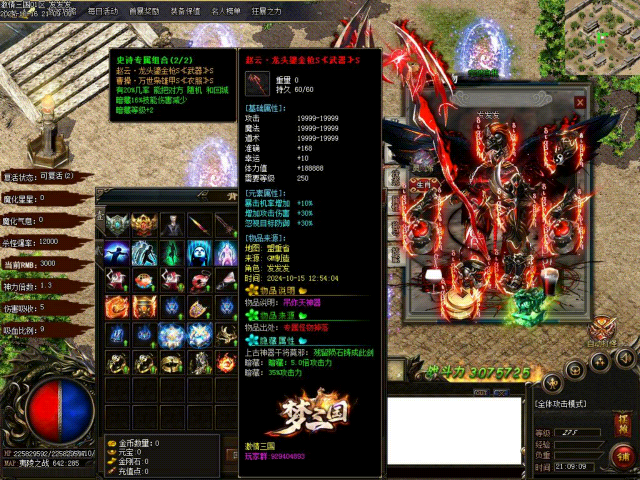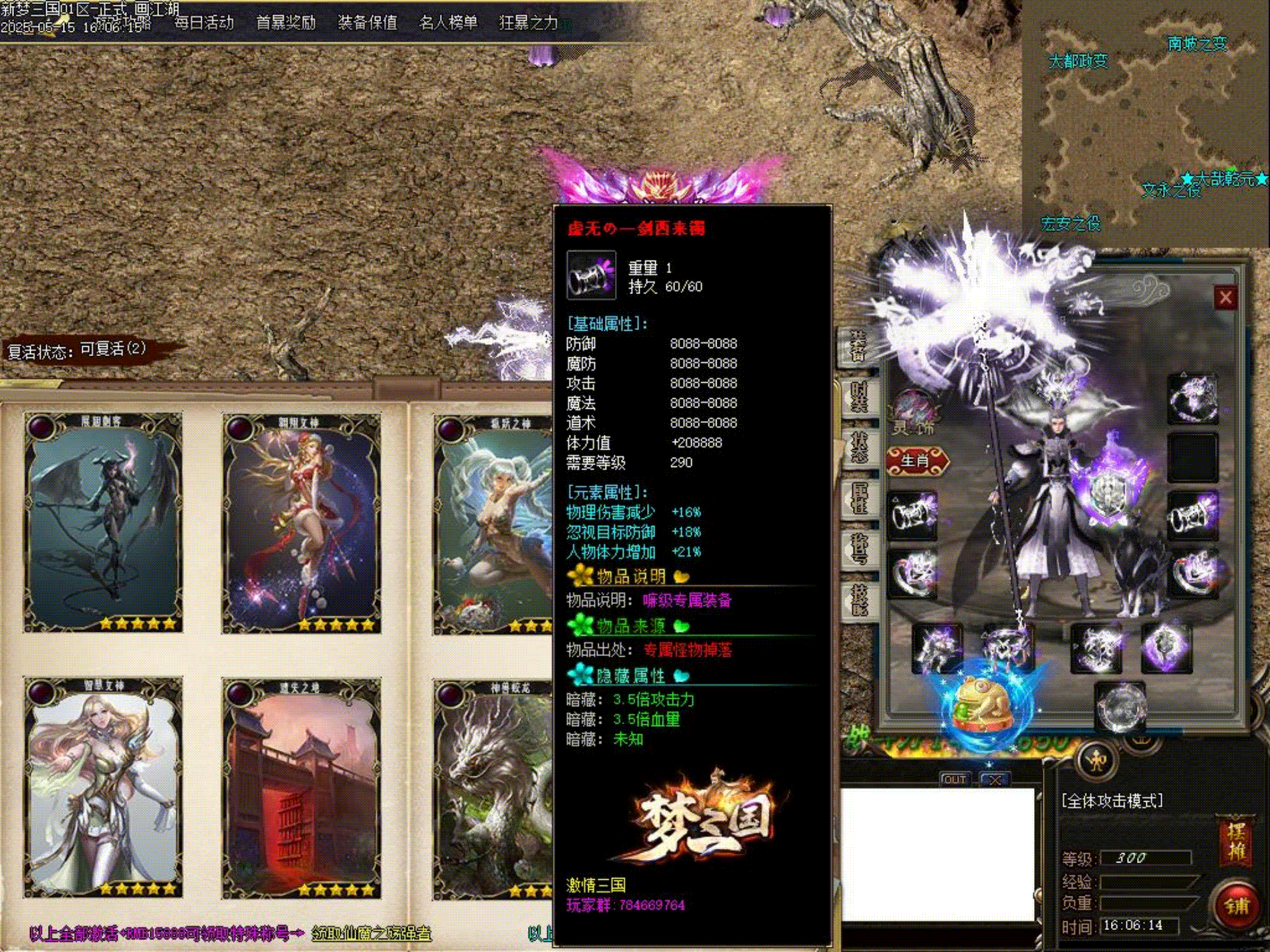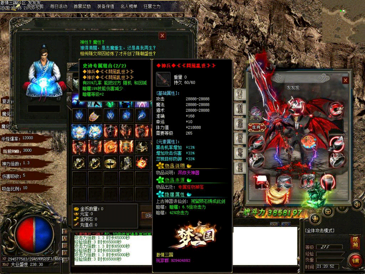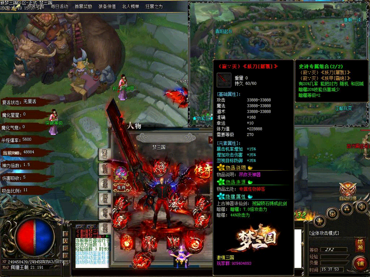 《激情三国》增加部分后期BOSS的伤害和攻击属性,修改梦轮回不能挂机问题。