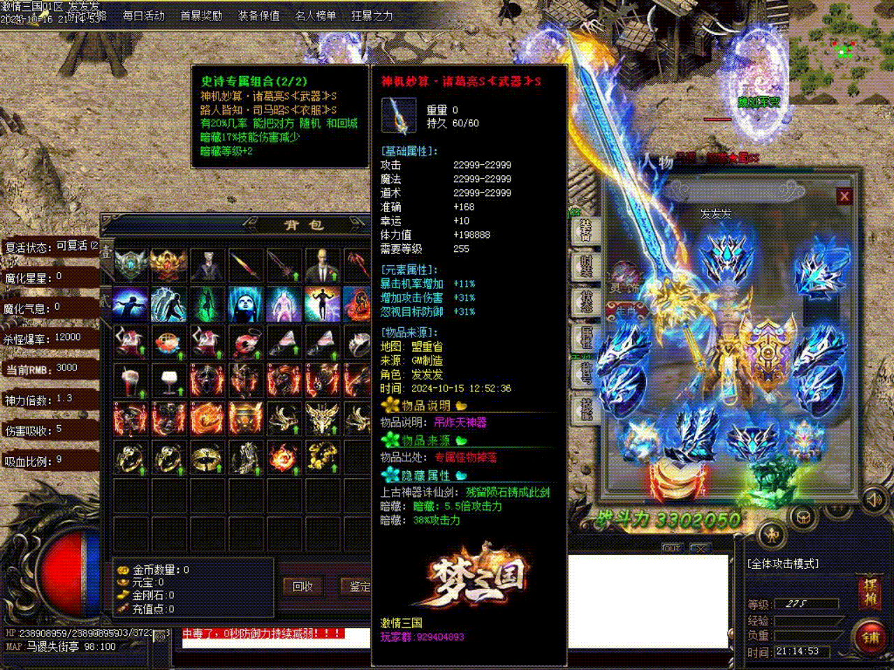 《激情三国》修改部分装备BUFF的伤害和几率问题。增加小部分装备的RMB回收数量。