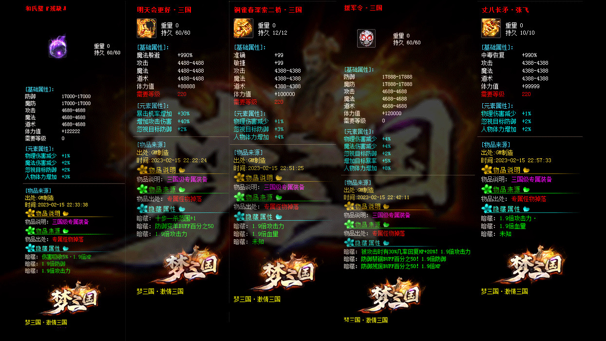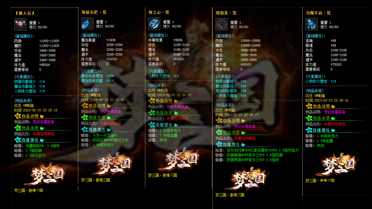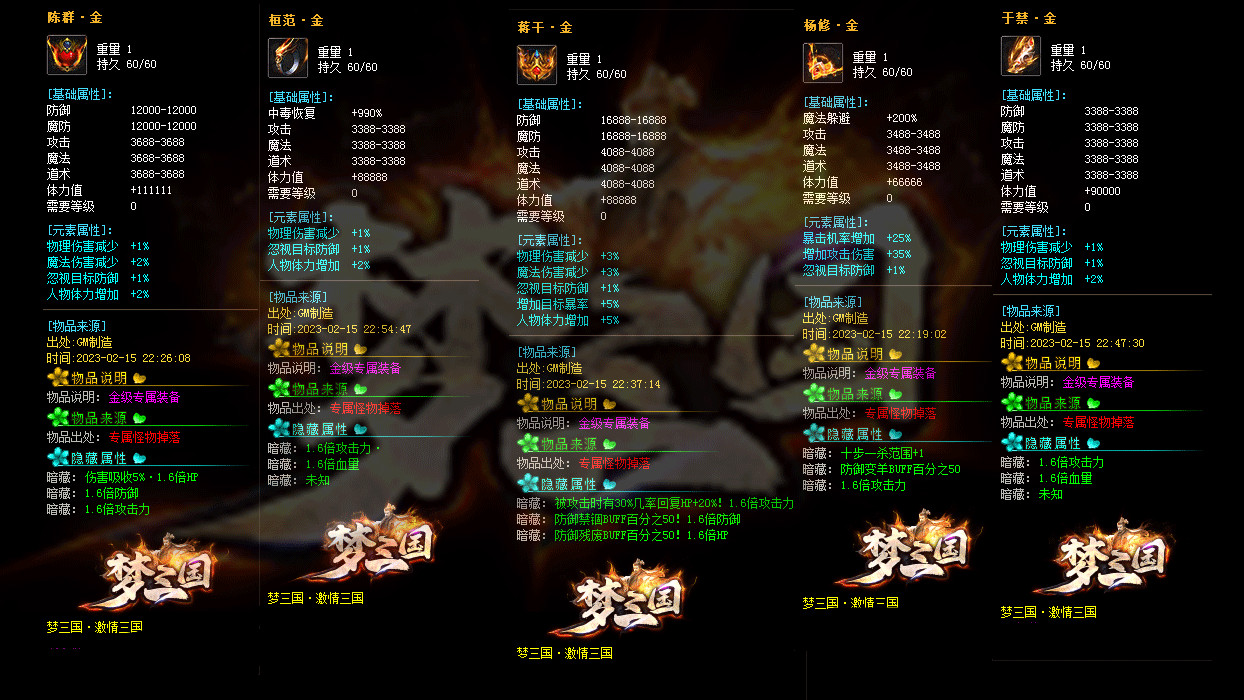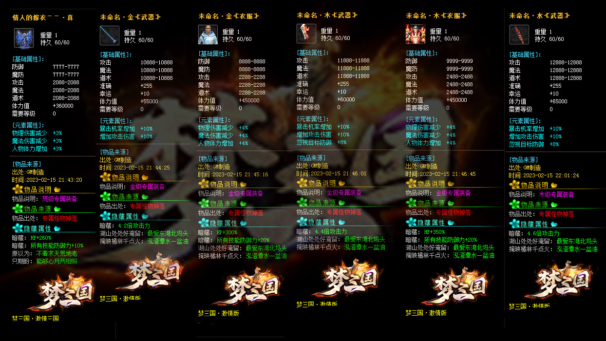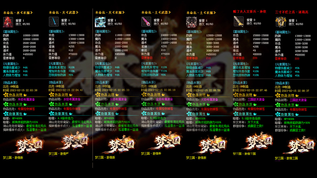 《激情三国》修改大部分装备回收元宝数量,为防止后期垃圾太多,删除后期部分垃圾道具