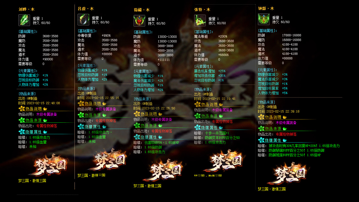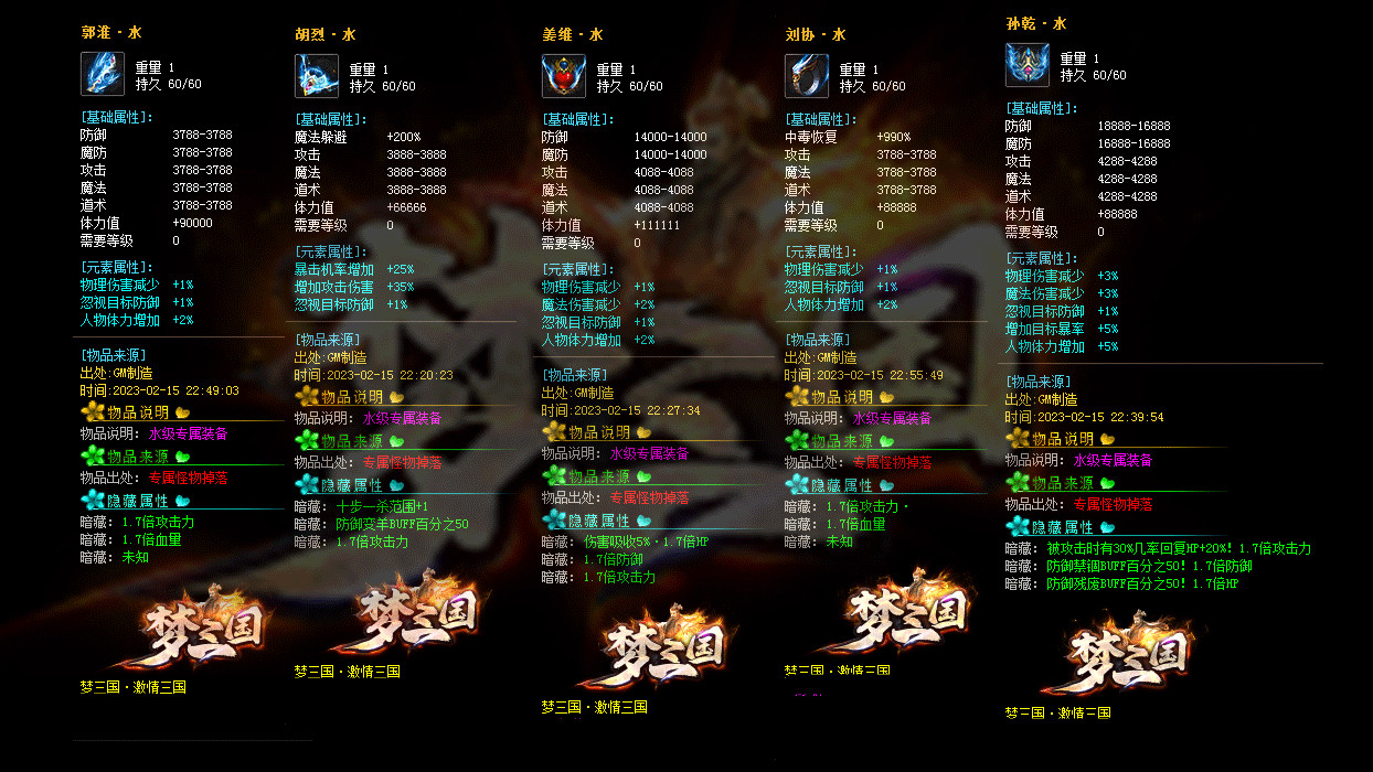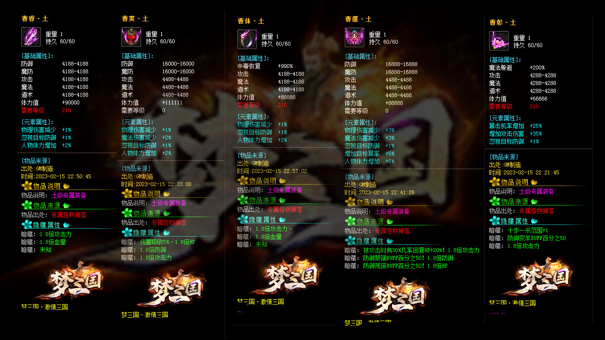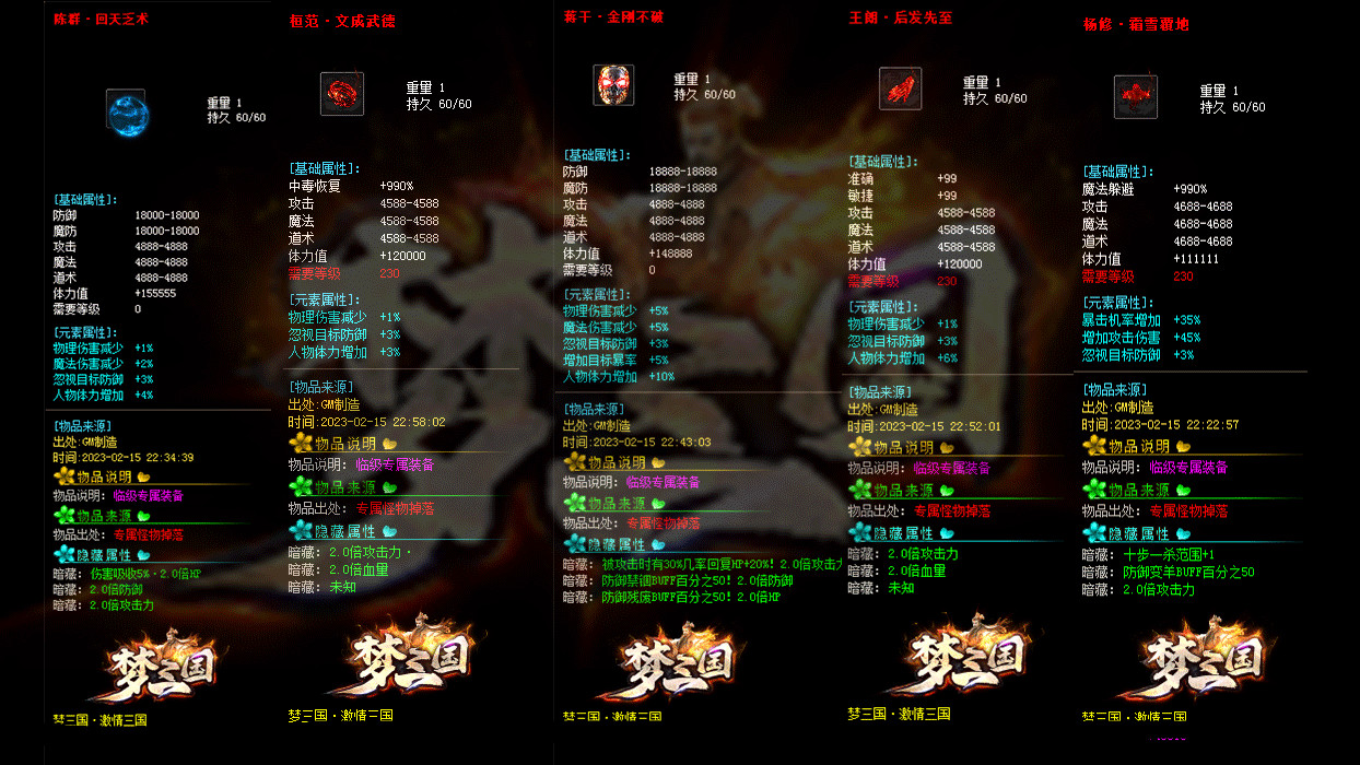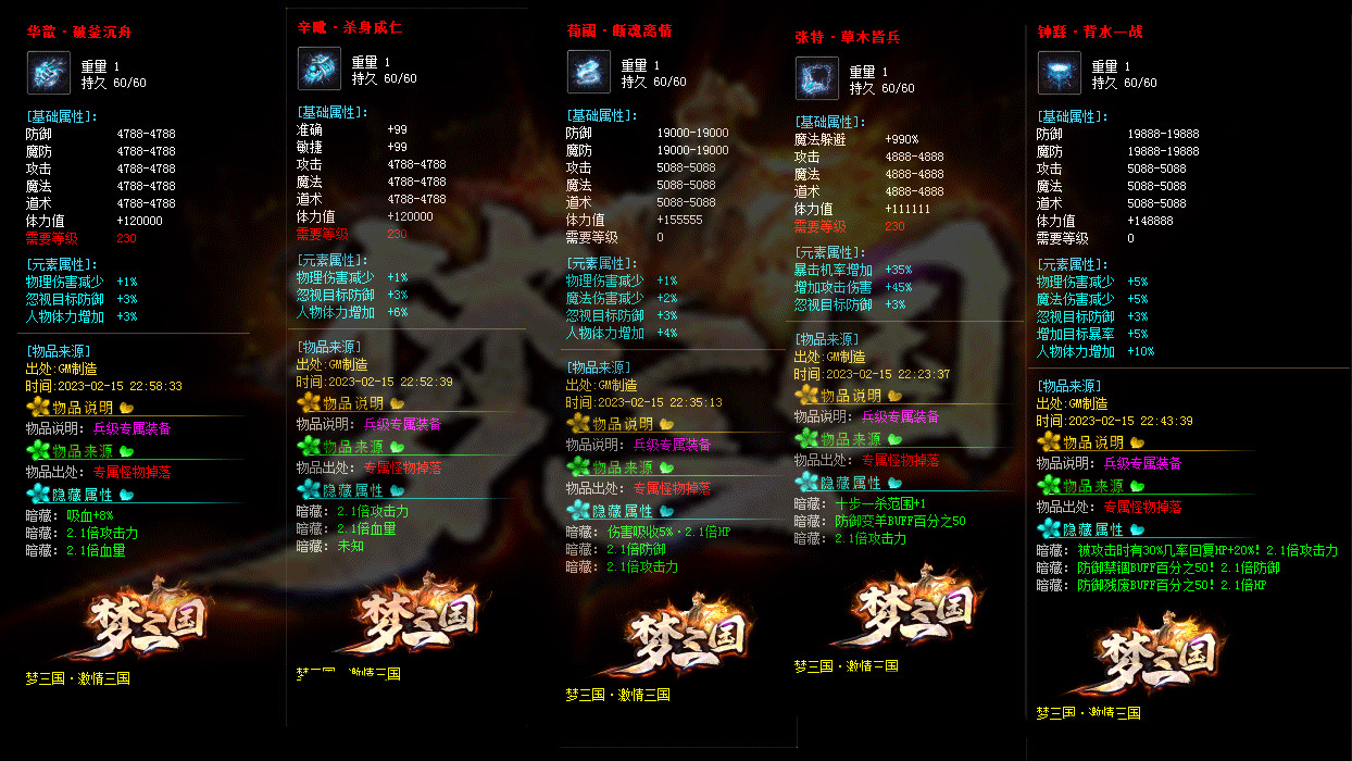 《激情三国》修改大部分装备回收元宝数量,为防止后期垃圾太多,删除后期部分垃圾道具