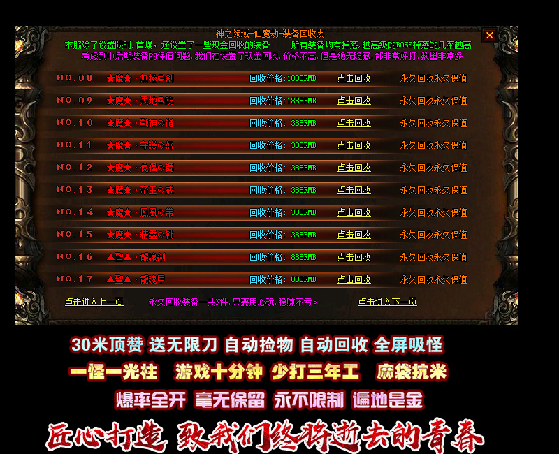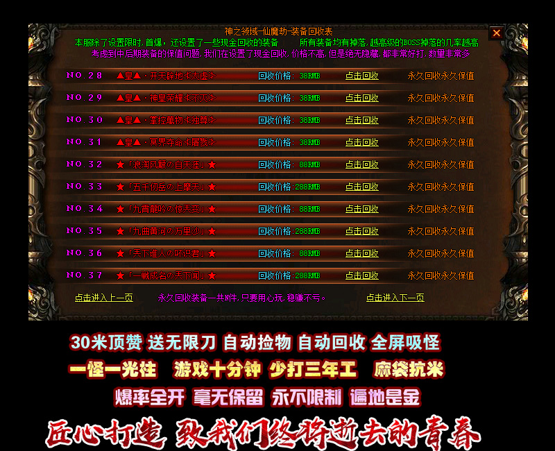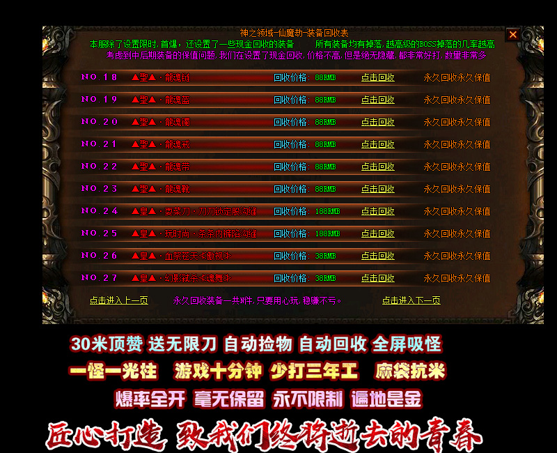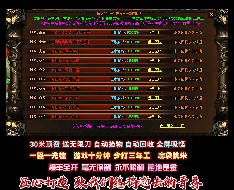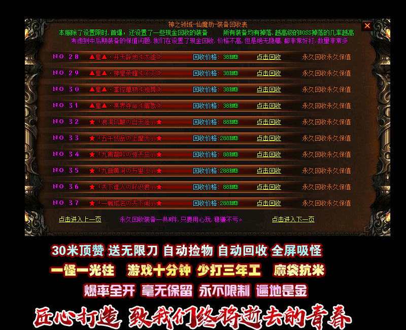 本服终极保底回收 积分好打 元宝满地爆 版本耐玩 活动超多 爆率合理 誓做全网最好玩单职业