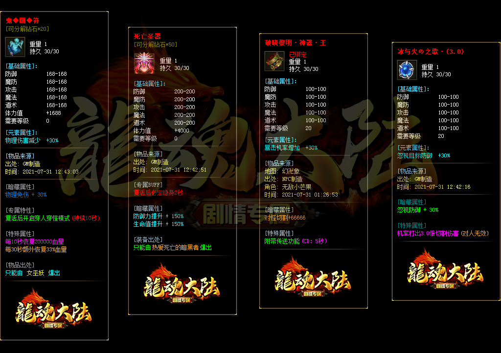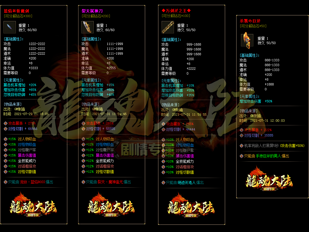 【龍魂大陆·剧情专属神器】