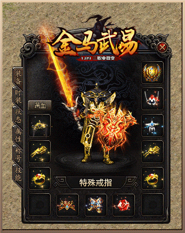制作地点 <比奇城> 需要材料:<黄金武器>+<红域武器>+<蓝灵武器>+<精炼神石>