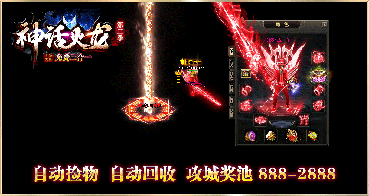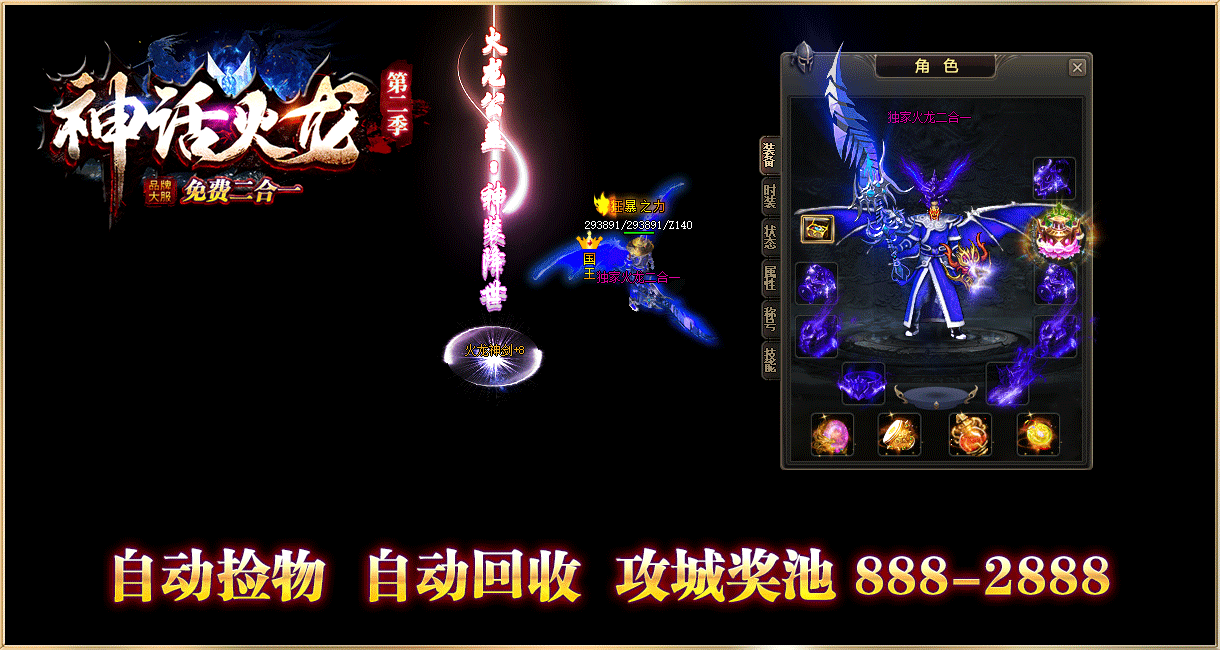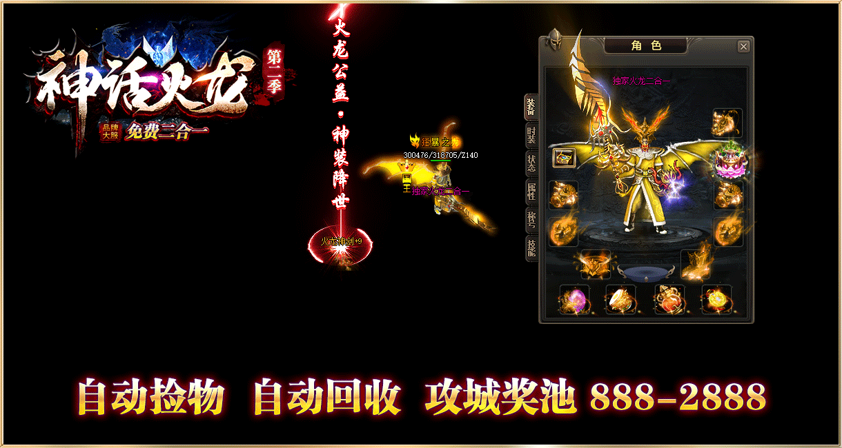 全网独家火龙二合一版本,合成全部免费,装备好打,无宠物!!