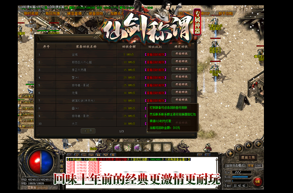 2、上线送自动拾取,自动回收,无限刀 回味05年的经典。可回收现金!更耐玩!