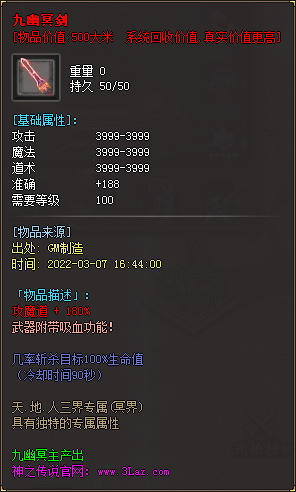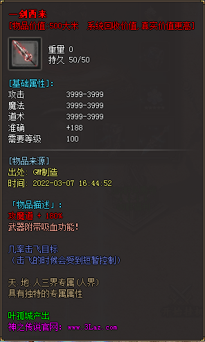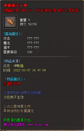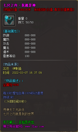 All rights reserved. 版权所有 本游戏由【神之传说】独家开发运营 认准唯一正版3laz.Com