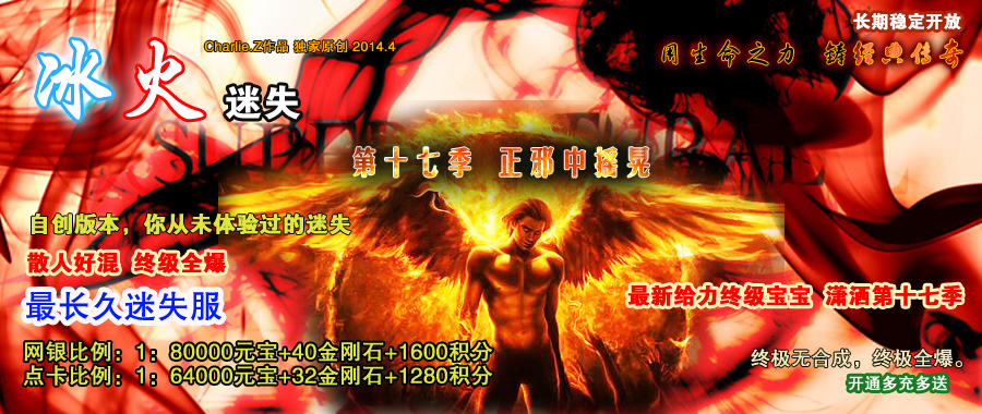 更新租宝宝可买保险服务,切身为玩家考虑。 更新超级4种野外超级BOSS。全方位增加各个地图BOSS,打不完的BOSS。 更新除固定地点刷新相应外,各个顶级、终级地图都会不定时地刷新各种终级BOSS。 更新八个神力散件,均为单独触发隐藏倍攻属性。装备具体属性请去游戏中查看“神力散件说明员”NPC。 增加一个福利地图“冰火再舞”,后期打元宝、金刚石地图。 增加修佛NPC和武器元素开光NPC,具体游戏中冰火皇宫内见。