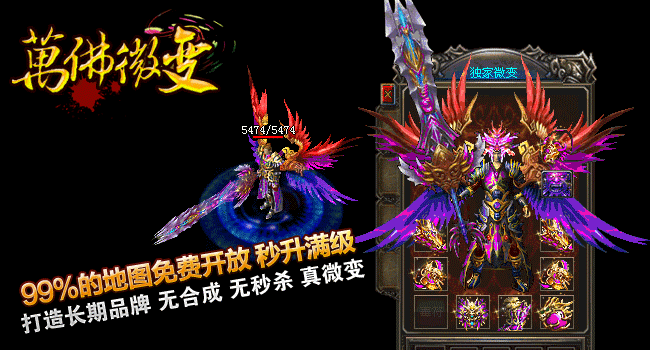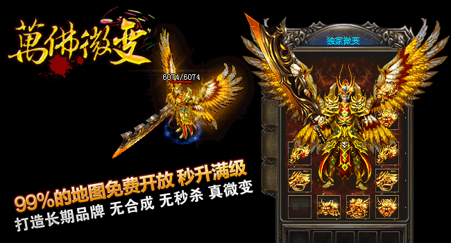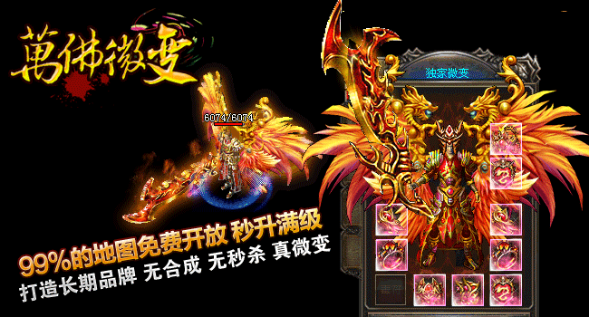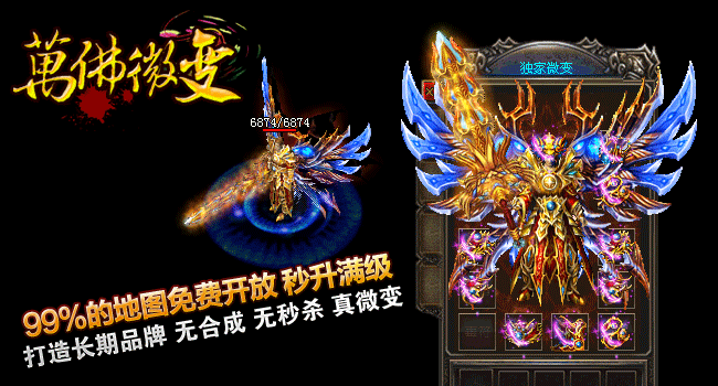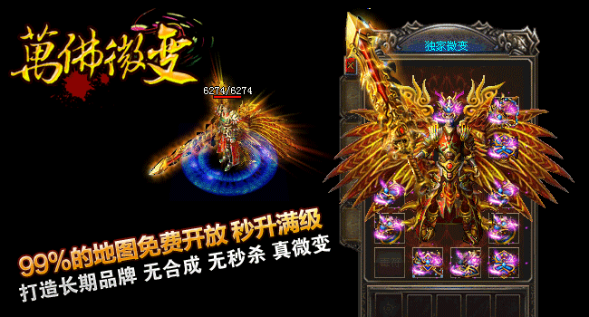 游戏介绍① >> 2014年萬佛微变重金聘请资深游戏策划主创及专业美工人员,历时半年多创新修改,呕心沥血制作, |