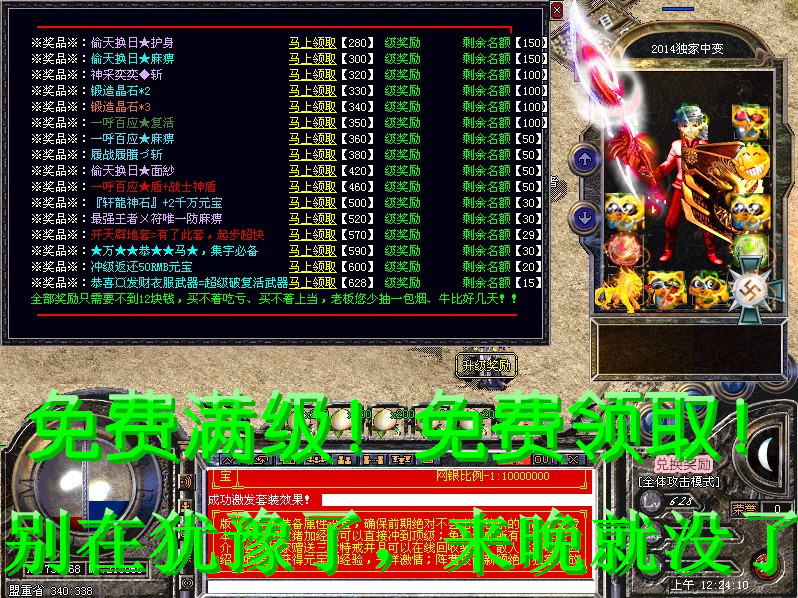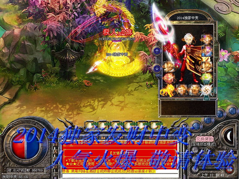 2014独家“中变”/终极必爆/等级狂升/一键回收/人气火爆/无秒杀/PK流畅