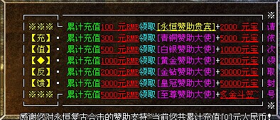 元宝比例:1比100 点卡赠送80 网银赠送100
