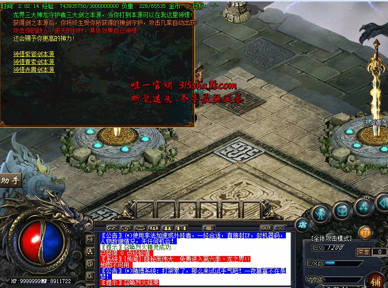 - 混到500级领取充级奖励 直接去转生地图或者攻击力地图打,有一定装备了可以法师冰咆哮群怪!