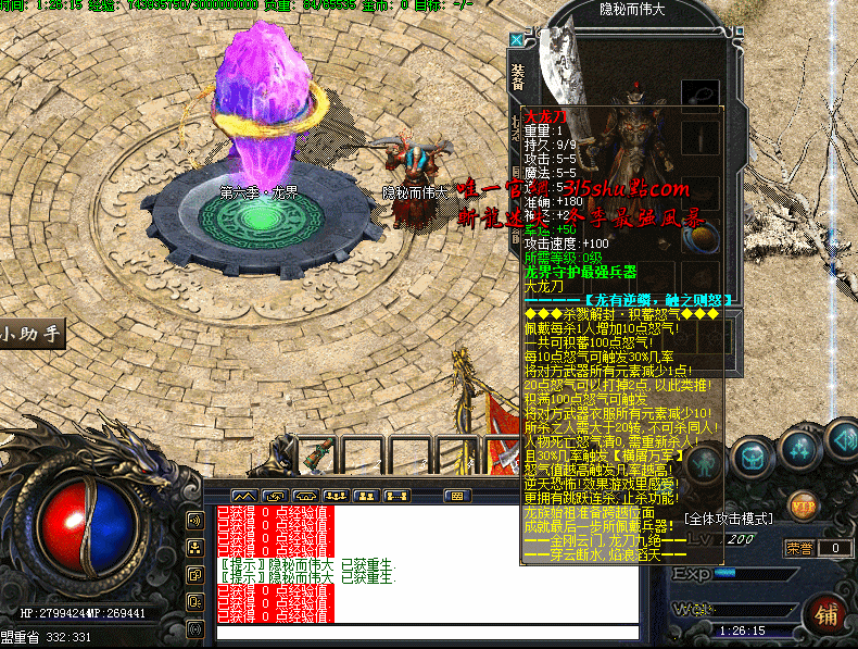 增加一把终极武器,大龙刀,此武器自带怒气系统,每次杀人都会获得怒气,触发更高的效果,相当逆天,最高可以积满100点怒气!