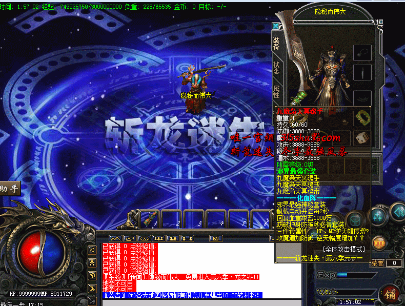 - •增加全新首饰套装,九魔枭天冥魂套,佩戴自动开启每2秒回复血量跟蓝1000万,防破护身防秒杀必备