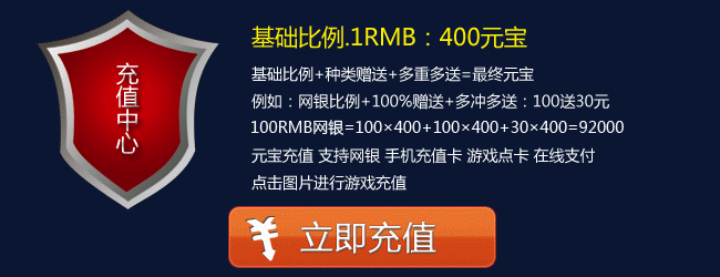温馨提示:充值前请确认账号,您所在的游戏战区,因神州行,游戏充值点卡充值 游戏下发网关稍缓慢,请玩家确认充值后,如没有获得元宝