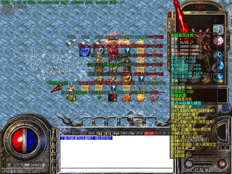 可通过大机缘进入 ,也可通过充值赠送的土豪点进入,此地图是本服爆率最高的地图,掉落任何装备!