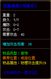 所有装备带上后都有几率出现XXX【可成长】字样,玩家可以通过打怪去成长装备 可成长装备可以升到30级,每级增加1-3点属性,10级装备刻名.