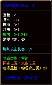 本F所有装备都是装备后自动鉴定极品属性的,根据所增加属性的多少,所以名字的颜色也不同。就算是垃圾装备也可能鉴定出神级的属性。