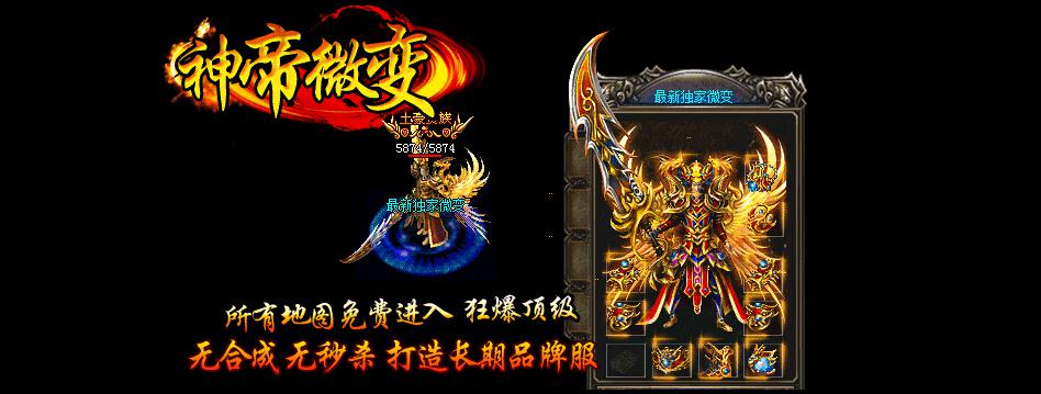 版本介绍 >> 2015年神帝微变重金聘请资深游戏策划主创及专业美工人员,历时半年多创新修改,呕心沥血制作,终于与大家见面。 元宝比例 >> 短信1:10000 点卡1:18000 网银1:20000。 冲的多送的多。 开区介绍 >> 开区第二天晚8点拿沙奖励300万,以后天天拿沙奖励100万,激情不断奖励不断。!!! 游戏特色 >> 不变态不秒杀,绝非快餐服,装备属性经过我们严格测试才开区,绝对不存在秒杀现象!。 游戏特色 >> 本游戏是一款无特戒,无秒杀的游戏,是真正意义上的合击版本,完美设置,以散人为核心,让游戏更加激情!