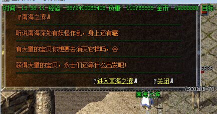 6.南海之滨:此地图散人玩升级必备,免费进入。 爆率指数:☆☆☆☆☆ 经验指数:★★☆☆☆ 元宝指数:★★★★☆ 激情指数:★★★★★ 荣誉指数:★★★★☆