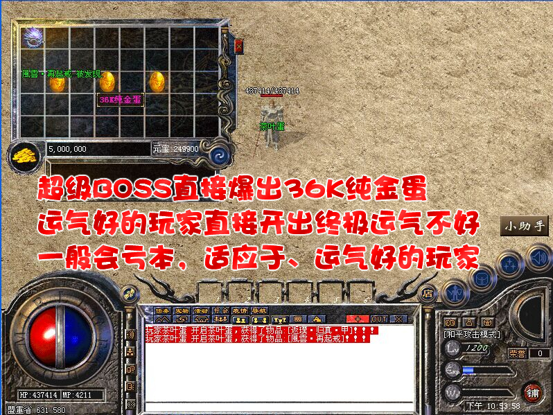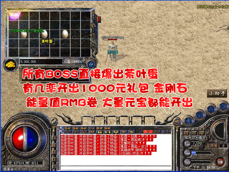 特色⒊.所有boss都爆茶叶蛋,大boss直接爆出36K纯金蛋.茶叶蛋开启获得一定数量的元宝能量金刚石头.